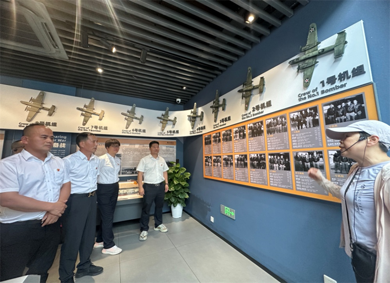 全體黨員一行懷著崇敬的心情先來到杜立特行動紀念館參觀。1942年4月18日,美國發(fā)動了“杜立特空襲行動”,這是二戰(zhàn)期間對日本本土的首次空襲,極大鼓舞了反法西斯戰(zhàn)爭的士氣。紀念館內(nèi)展出了“大黃蜂”號航空母艦、B-25轟炸機模型以及200余張珍貴歷史圖片,近200件與“杜立特空襲”及浙贛戰(zhàn)役相關(guān)的文物,其中絕大部分為首次公開展出。作為全球唯一全景式反映“杜立特突襲”主題的紀念館,這里生動再現(xiàn)了中美兩國人民共同抗擊法西斯的英勇事跡。黨員們在參觀中深刻體會到國際合作的重要性,并對英雄們的大無畏精神致以崇高敬意。